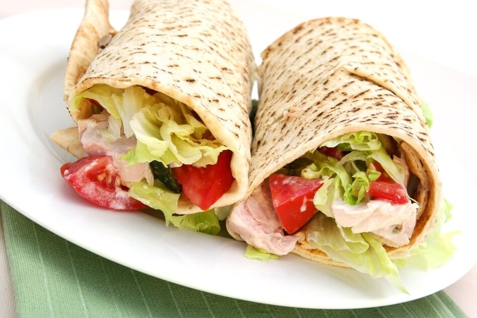 Chicken wrap sandwich ~ organic grilled chicken with fresh salad.